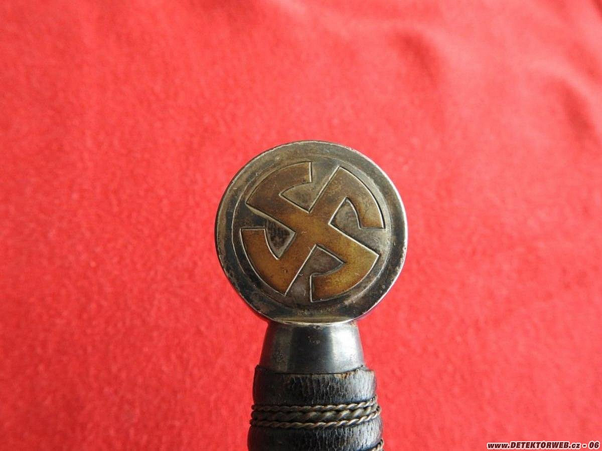 Kordík je z ranného obdobia produkcie, záštity sú vyrobené z farebného kovu, ktorý je silno striebrený. Striebrenie je na celom kordíku dochované aj napriek viditeľnému používaniu na 100% - je ho pekne vidieť aj medzi ramenami swastiky alebo tzv. slnečného kotúča. Zlatenie na swastikách je tiež vo vynikajúcom stave a s trochou čistenia by iste opäť žiarilo, ale nedotknutý kordík je atraktívnejší... Rúčka je potiahnutá marockou kožou z malých kozliatok a opletená veľmi precízne drôtmi z farebného kovu. Čepeľ je značená ranným značením výrobcu Carl Eickhorn, používaného v rokoch 1933 až 1935, tento typ značenia je považovaný za vzácny, najmä u kordíkov wehrmachtu ale aj pri kordíkoch Luftwaffe 1. Model. Čepeľ je leštená, nie niklovaná. Nie je brúsená ani poškriabaná, avšak je pokrytá vrstvou špiny, možno by ju šlo vyčistiť, ale nechávam tak ako je. Puzdro je veľmi zaujímavé, v krátkosti uvediem, že jeho kovania, reťaz a karabínka sú vyrobené z rovnakého materiálu ako celý kordík a silno striebrené. Na čo však chcem upozorniť je reťaz na puzdre, ktorá je s ním spojená pomocou dvoch sponiek v tvare písmena „S“. Tento typ reťazí môžeme nájsť výlučne na tých najrannejších kordíkoch a kordíkoch DLV – nejde o bežnú vec a rozhodne ide o malú raritu. Ďalšou zaujímavosťou je značenie kordíku jednotkou Luftwaffe, ku ktorej patril a to na pravom ramene spodnej záštity značením „A. G. 15“ a na náustku kovania puzdra „A. G. 115“. Tieto skratky na kordíku znamenajú Afklärungsgruppe 15 a Afklärungsgruppe 115, teda letecké prieskumné jednotky alebo možno aj letecká rozviedka. Čísla nám pritom presne identifikujú konkrétnu prieskumnú jednotku Luftwaffe. O kordíku som písal článok v časopise Detektorrewue 05/2018, v ktorom som sa podrobne venoval konštrukcii kordíku a histórii prieskumných jednotiek Luftwaffe, vrátane jednotiek, ktoré sú s kordíkom navždy spojené a to Afklärungsgruppe 15 a Afklärungsgruppe 115. S pozdravom PetkoZberatel