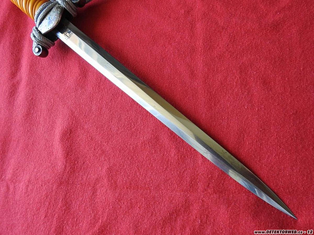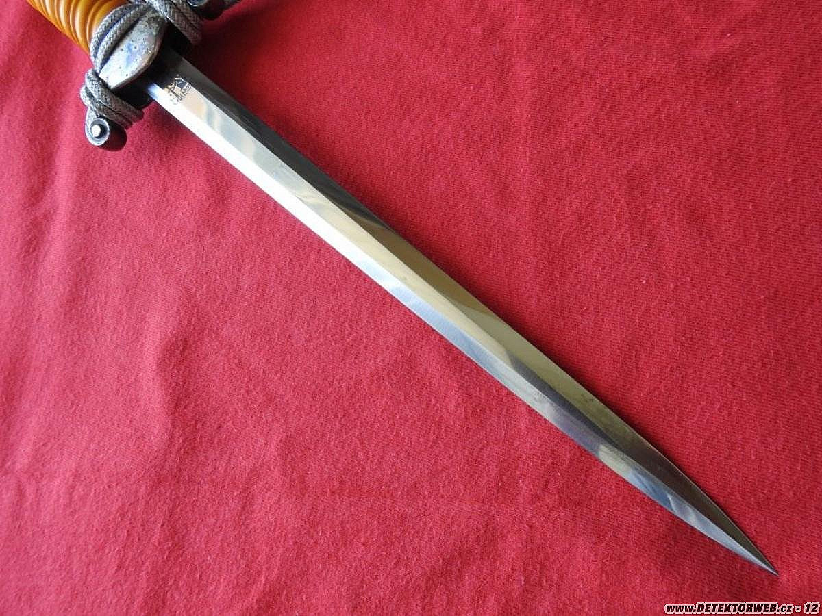 Kordík wehrmachtu, ktorý môžete vidieť na priložených fotografiách je posledný typ 4, ktorý považujem za asi najpodarenejší a graficky najlepšie spracovaný spomedzi všetkých návrhov. Je to len môj subjektívny názor a iní zberatelia môžu mať iných favoritov. Už som tu raz tento typ kordíku posielal a popísal som aj každý jeho jedinečný aspekt, preto sa veľmi nechcem opakovať, všetko dôležité už napísané totiž bolo. Mrzí ma, že aj napriek tomu, že zberatelia majú detailne popísané prvky kordíku aj s upozorneniami sú stále ochotní vyhadzovať do koša desaťtisíce (českých korún) za poskladane, falošné a vyložene zlé exempláre. Pritom si stačí dať do prehliadača "kordík Carl Eickhorn" a v zrozumiteľnej reči máte k dispozícii text a fotografie, ktoré Vám pomôžu vyvarovať sa zlej kúpy a nenaletieť podvodníkom.