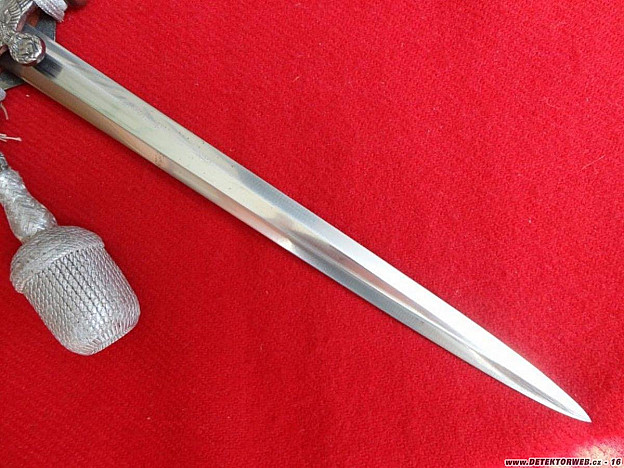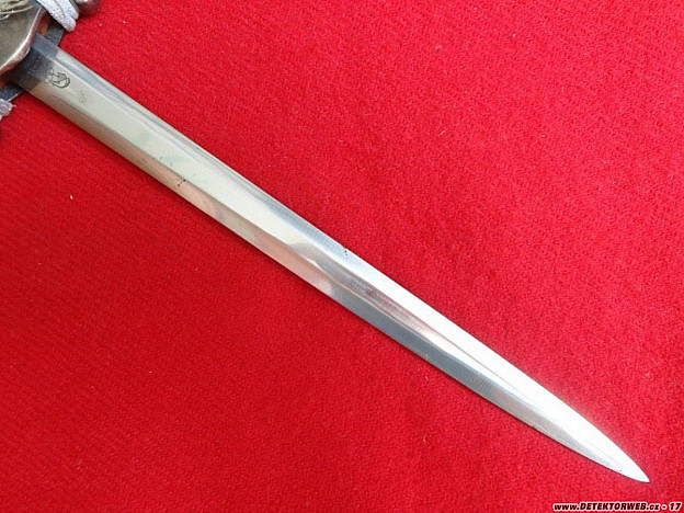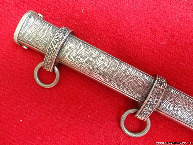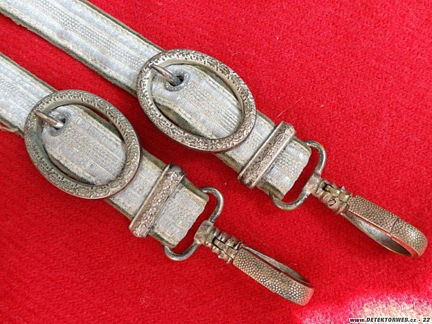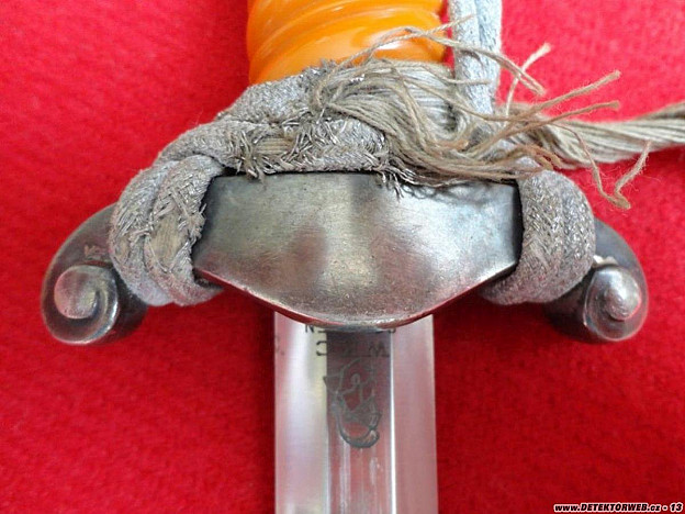 Kordík je kompletný, aj k nemu patriacemu portepe, ktoré nebolo nikdy dávané dole a ku kordíku je doslova primrznuté. Závesník je veľmi vzácny, z ranného obdobia produkcie, pretože všetky jeho časti sú vyrobené z farebného kovu – tieto ranné závesníky sú extrémne vzácne a nachádzajú sa veľmi ťažko, nehovoriac o tom, že tento je aj pekne značený.