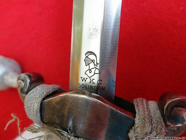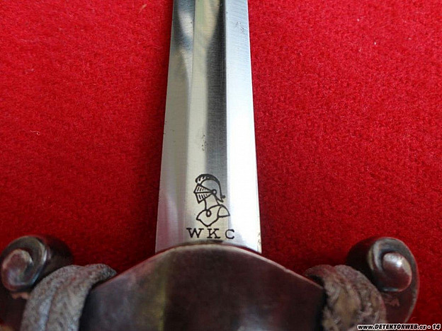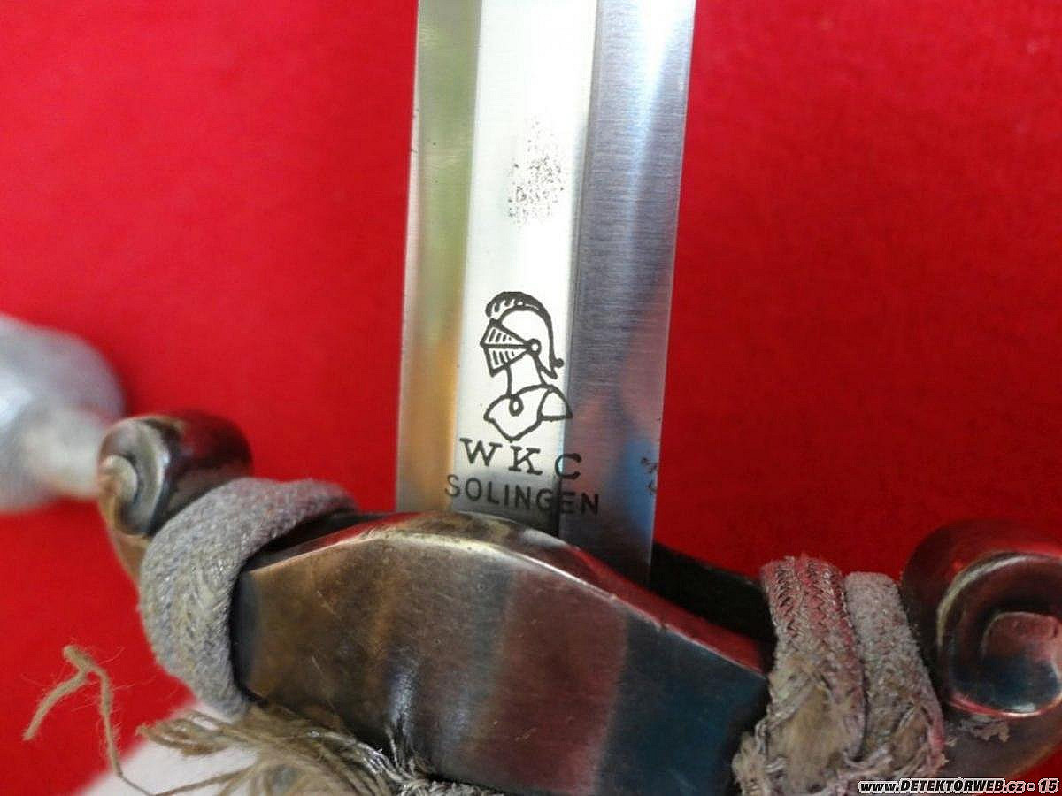 Čepeľ je v plnej dĺžke a šírke v pôvodnom tovarnom výbruse a v plnom lesku. Čepeľ je pomerne masívna, najmä ak ju porovnáme s neskoršou produkciou a je vo vysokej kvalite. Značená je známym značením, ktoré spočíva v rytierskej hlave v brnení, s malym medailónom na krku. Pod týmto značením sa nachádza názov výrobcu "WKC" a lokalita "SOLINGEN". Ako si môžete všimnúť, značenie je položené nižšie ku záštite – toto je typický znak rannej produkcie od WKC, pretože neskoršie kordíky mali značenie podstatne vyššie na čepeli.