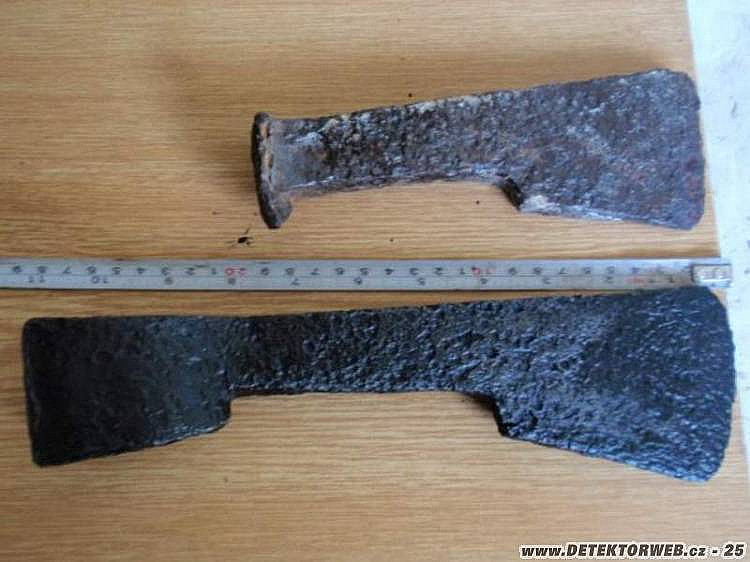 02. 11. 2012, 10:07nechci do toho kecat, ale mas tam latenskou nebo halstatskou sekeru ( 6, 7) a taky mozna jablko ze stredovekeho mece (14), ale neni to jiste, tvarove by mohlo byt, akorat spodni dira na rap je nejaka moc velka... Tak i tak tam jsou jeste dalsi zajimave stare zeleza, sekery, atd.