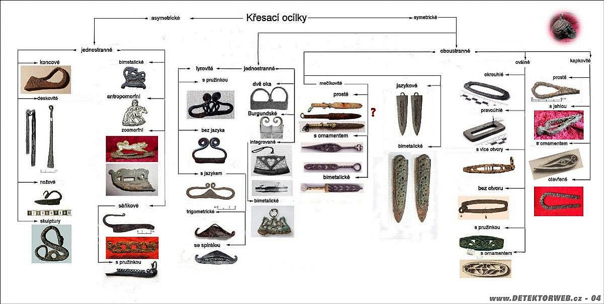 Při vytváření typologie křesacích ocílek jsem přece jenom zařadil i nálezy z Ukrajiny, i když s otazníkem, doplněny o křesací ocílky podobného tvaru z Evropy. Vedla mne k tomu jedna typologie ruská, ze které jsem vycházel, kde takto zařazeny byly. Typologie je sestavena na základě jednoduché klasifikace od S. Stupana, podle něhož jsou všechny křesací ocílky rozděleny do 4 hlavních kategorií: symetrické, asymetrické, jednostranné a oboustranné.