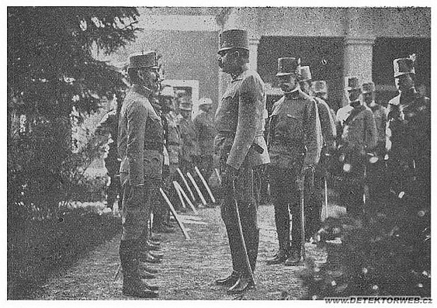 02. 12. 2010, 11:12... vyzerá ozaj ako arcivojvoda František Ferdinand d´Este, ale nie som si istý či je to ozaj on... ak dobre vidím, niektorí dôstojníci majú na unifromách náprsné stužky vyznamenaní, no pokiaľ viem, tie sa začali používať až v priebehu vojny...