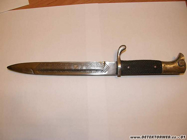 Dobrý den, vlastním tento německý krátký vycházkový bajonet z druhé světové války vzor KS98. Podle délky čepele se jedná o typ, který nosili poddůstojníci. Tento model od výrobce "Ernst Pack & Söhne Solingen" nosili také příslušníci Waffen SS. Vzhledem k tomu, že jsem si vědom, že existuje obrovské množství padělků leptů na čepeli (ten mě na tomto bajonetu zaujal), snažím se sehnat experta, který by mi byl schopen říct, zda je, nebo může být lept na čepeli originální, nebo zda se jedná o snahu navýšit cenu obyčejného bajonetu. Vzhledem k tomu, že vycházkové bajonety byly privátní vlastnictví vojáka, bylo celkem běžné, že čepele byly zdobeny různými motivy. Nezřídka i označením jednotky, u které sloužili. Viděl jsem původní lepty s čísly regimentů a různé vzpomínkové nápisy, ale s leptem označujícím SS divizi jsem se nesetkal. Nepovažuji to ale za vyloučené, zařazení v takové divizi s sebou neslo tehdy i určitou hrdost, proto by mě osobní lept s tímto nápisem nepřekvapil, ale určitě Leibstandarte je i líbivý motiv pro padělaný lept. Zabýváte-li se někdo bajonety z druhé světové války, budu rád za Váš názor a důvody, které Vás k němu dovedly. Od prodejce jsem si vyslechl pěknou historku o nálezu tohoto bajonetu při rekonstrukci starého domu, ale přistupuji k ní s odstupem jako ke všem podobným věcem. Děkuji za jakoukoliv odpověď. valladolid