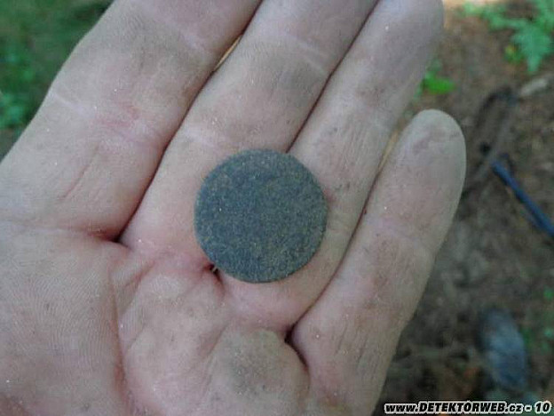 Zdarec lidi. Tak jsem dnes na sedmou vyrazil do lesa. Mamka tentokrát dře, a páč valím až večer na Hamburg, a v noci si trošku sprchlo, prvně po pěti nedělích, řekl jsem si, že by v lese mohlo být příjemně. A bylo, chládek, žádná havěť, tak to dopoledne pěkně uteklo. Padlo pár knoflajzů, dvě kolečka totálně nečitelné, to vlevo bude asi grešle od Mařky. A medajlička "Třetí Rakouský sraz střeleckých spolků v Grazu 1889" ta udělala radost. Má už holka něco za sebou, ale má na to věk.