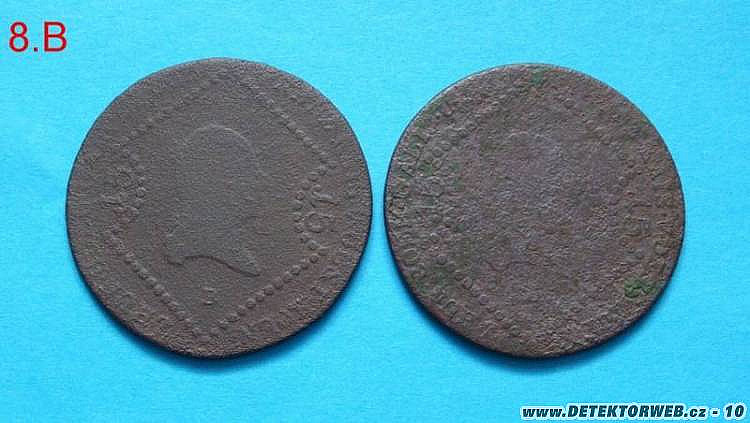 Foto 8.AB - 9.: měděné mince, patnáctikrejcary a čtvrtkrejcar.