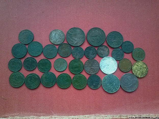 Tak za půl roku něco se pod cívkou objevilo. I pár Ag. Na jarním poli vratislavský haléř, pak v lese pfennig Landshut - Bavorsko, a nyní v jednom lese tři dvacetníky. A pár drobných, odznáčků, knoflíčků a přezek k tomu.