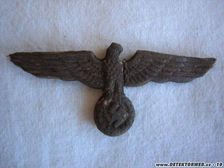 Zaparkoval jsem auto na kraji lesní cesty, vybalil nádobíčko a vyrazil do terénu. Asi po deseti metrech začal detík podivně prskat, jako vždy, když narazí na železo, hliník, zinek a měď dohromady. Na tomhle místě jsem už v zimě byl a jako, , bordel“ jsem ho přešel. Teď ale vidím, že zde bylo dost kopáno a na pařezech a u kořenů stromů se válí vykopané plíšky, dráty, pojistky a vypínače a mezi tím vším nějaké střepy. A tady mě to trklo. Ty porcelánové střepy jsou z německého talířku a ty bakelitové vypadají jako z polního telefonu. Hranaté skleněné jsou z lékovek. Ten bordel je po Němcích! A protože místo není veliké, zhruba 4x4 metry, tak se rozhoduju, že zkusím vyndat všechno a uvidíme. K autu je to kousek a času je málo. Hned na druhý kop se mi podaří sluchátko s logem ABL (že by špionážní Víta Bárty?) a na další železné chránítko ústí na Mauser K98k. Teď už vím, že jsem dobře a trpělivě vytahuji drátky, pojistky, elektronky, šroubky, matičky a různé přepínače. Trpělivost se vyplácí a ze země vykoukne orlice s hákovým křížem, bohužel bez křídel. No vida. Dávám ji do kapsy (nálezovou taštičku jsem já blbec nechal doma) a hrabu dál. Další pěkný signál je prvorepublikový lvíček na lodičku a s ním vypadne i gumová krytka ústí opět na Mausera. Tak mě napadá, že mám v kapse malý igeliťák s papírovým ubrouskem od svačiny, tak bych tam mohl bezkřídlou slepici a lva zabalit aby v kapse nedošly k úhoně. Šmátrám tedy rukou v kapse a ouha, je v ní malá díra a slepička je PRYČ!!! Kleju jak pohan a nadávám si za tu nálezovou brašničku, která doma zahálí. No nic, zkusím ji najít znovu, vždyť chodím na fleku. Jenže místo bezkřídlé nacházím další s jedním křídlem, vzápětí další, ta už je super.