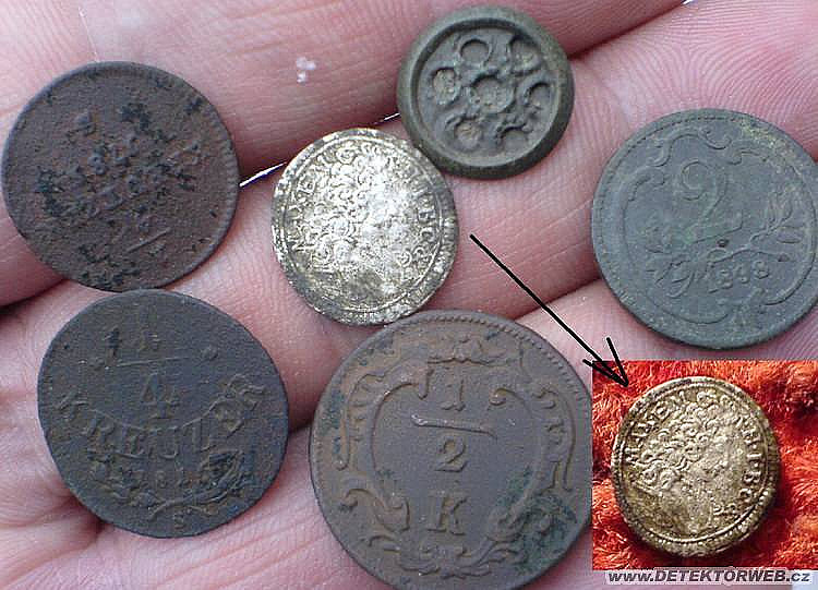 úterní sluníčko, mně hned ráno vytáhlo z postele. Po pěti dnech bez hledání, mně to táhlo na pole, kde jsem posledně našel mj. 1 kreutzer Franty Lotrýnskýho a 1/4 krejcar Josefa II. Část toho pole je proseta pískem a mince, knoflíky... jsou velmi pěkné a zachovalé - na rozdíl od jiných polí v okolí.