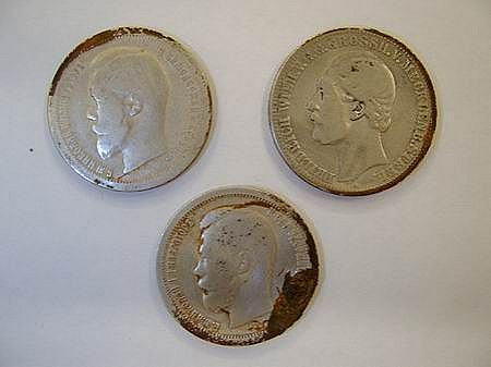 Tuba od maskovací barvy na obličej. Odznáček NSDAP, policejní odznak, a pecka do výložek. Spousta mincí. Prosím znalce o určení těch stříbrnáků. Zajímalo by mne jakou mají hodnotu. Samozřejmě je mi jasné že to není žádný poklad ale jsou to moje první stříbrňáky tak se o ně musím zajímat J. Mraky nábojnic různých zbraní a ráží (ty jsem ani nefotil). A víčko od jakési krabičky.