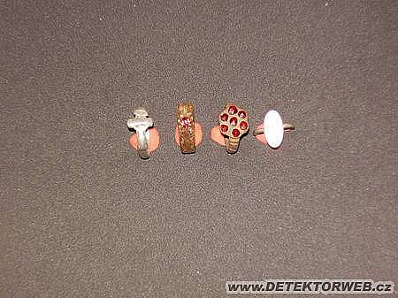 20. 01. 2006, 17:24Dík hoši. Doplňující informace: gold-prsten s granátem je podle puncu práce R-U a druhý granátový z blíže neurčeného kovu může být dle názoru zlatníka počátek 18. století, kdy se obvykle takovéhle prstýnky nahrubo vyráběly v domácích dílnách.