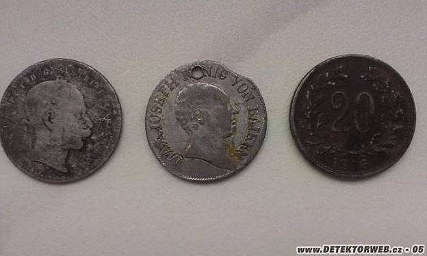 09. 10. 2012, 12:52Pražský groš Václava IV. , jeden vídeňský fenik a dva bavorské feniky. Vše je přibližně ze stejné doby.