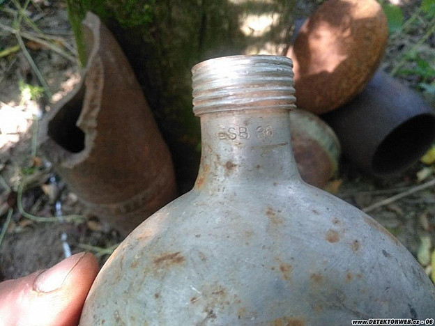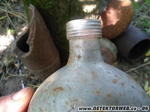 20. 08. 2021, 11:17Tomu říkám nadčasvý mix........... WW2 flaška ESB - Eduard Sommerfeld, Berlin, zbytek špatně vybuchlé střely nejspíš německé 10,5cm, nosič závěru s pístem ZB-26