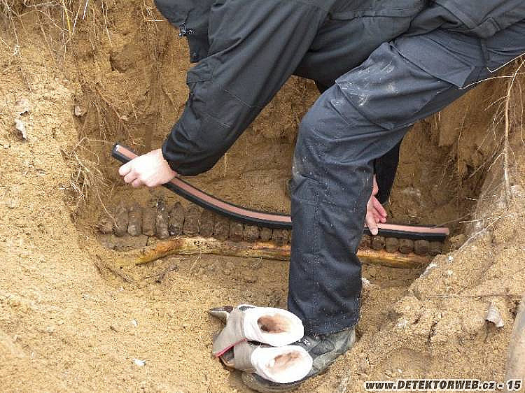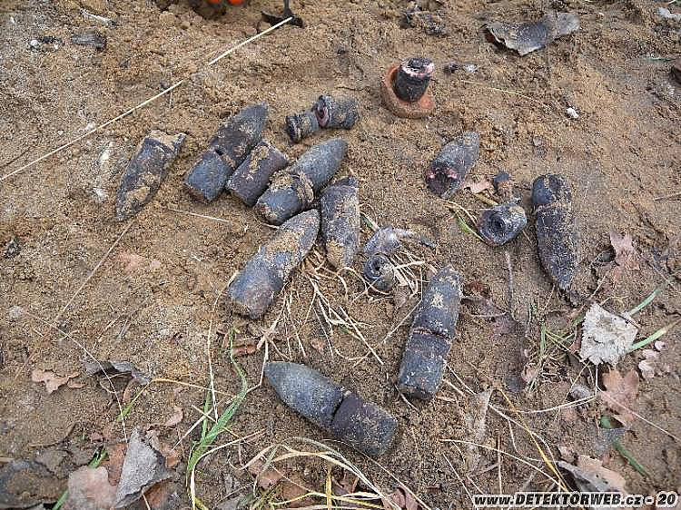 Shodou okolností jsme měli v uplynulých týdnech příležitost být u jednoho "případu" takříkajíc on-line, když jsme byli hledat v severozápadních Čechách. Prozvonili jsme kamarády, jestli nejsou někde poblíž na poli a ozvalo se: "Přijeďte, právě jsme volali 158." Třeba říci, že tito naši kolegové nejsou - díky tomu, v jakých končinách většinou hledají - v tomto oboru žádnými nováčky. Mají munici "nažitou" i "načtenou", a proto k ní přistupují s maximálním respektem. Na starou munici tady narazíte častěji, než může být většině lidí milé. Má to na svědomí takříkajíc někdejší vysoká četnost muničních skladů na metr čtvereční v tomto koutu kraje - poblíž stály kdysi čtyři, dnes je v provozu jeden, dva někdo poslal v roce 1945 do vzduchu, a tak je v okolí opatrnost při práci s rýčem či krumpáčkem víc než na místě.