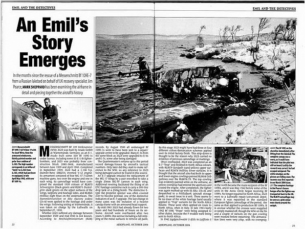 Bf-109E byl vyroben v roce 1939 a výrobní číslo bylo 3523. Byl nezvěstný od 4. dubna 1942, kdy se nevrátil pilot Wulf –Dietrich Widowitz z letu.