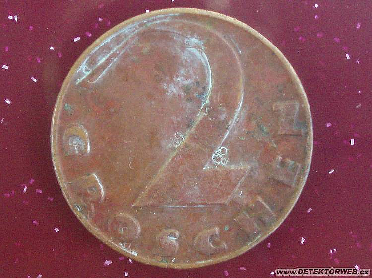 Druhá mince s ročníkem 1925 je rakouských 2 Groschen (2 groše; 0,02 Schillingu; před přechodem od rakouské koruny k Schillingu měla velice podobný vzhled inflační mince s nominálem 200 rakouských korun)