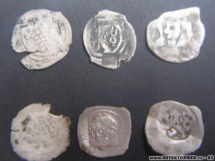 Mince se lvem jsou české z 15. století a mince s orlicí bude nějaká moravská městská ražba. Groše nejsou moc vidět. Vždycky je lepší u mincí, které jsou ražené z obou stran, fotit obě strany. Jinak nález je to samozřejmě perfektní
