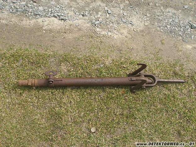 09. 05. 2011, 14:28Změř prosím průměr toho osazení na konci nad křídlovou matkou. Jestli je to 32mm, tak se zcela jistě jedná o lafetu pro MG34/42. Na osazení se nasazuje klasdická "vlašťovka" a do ní emgéčko. Pod osazením je kostka ve které chybí tlačítko, které po zmáčknutí umožní vysunutí osazení z trubky o cca 25 cm, stejně jako je tomu u "Dreibeine". Povolením křídlové matky se umožní vysunutí slabší trubky ze silnější jako u nohy trojnožky. A teď to nejzajímavější - druhý konec - ty háky s přepákováním slouží k přitažení celé lafety k pevné opoře, např. boku člunu nebo korbě náklaďáku. Jestli nezapomenu, oskenuji večer několik obrázků podobných lafet z knihy o MG34/42.