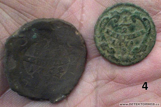 Foto č. 4 - tak to je jakýsi rozklepaný krajcar a netypický (pro mně) půlkrejcar od Mařenky-Terezky