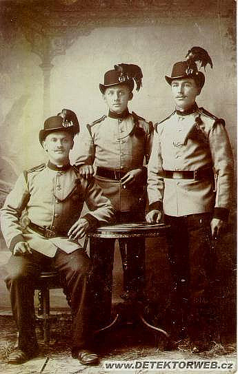 foto č. 5: nevidím či majú v "trúbke" na typickom klobúku s perom orla alebo číslo, ale jedná sa o príslušníkov buď jedného z pluku Tirolských cisárskych strelcov alebo jedného z práporov poľných strelcov...