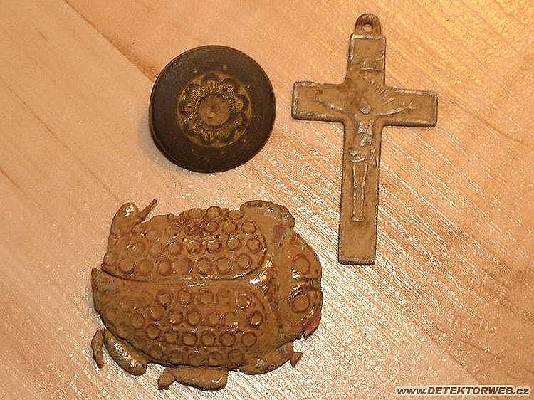 16. 12. 2008, 13:38Knoflík je z 18 století, ale příště foť obě strany. Ta mince s korunkou a monogramem je zajímavá.