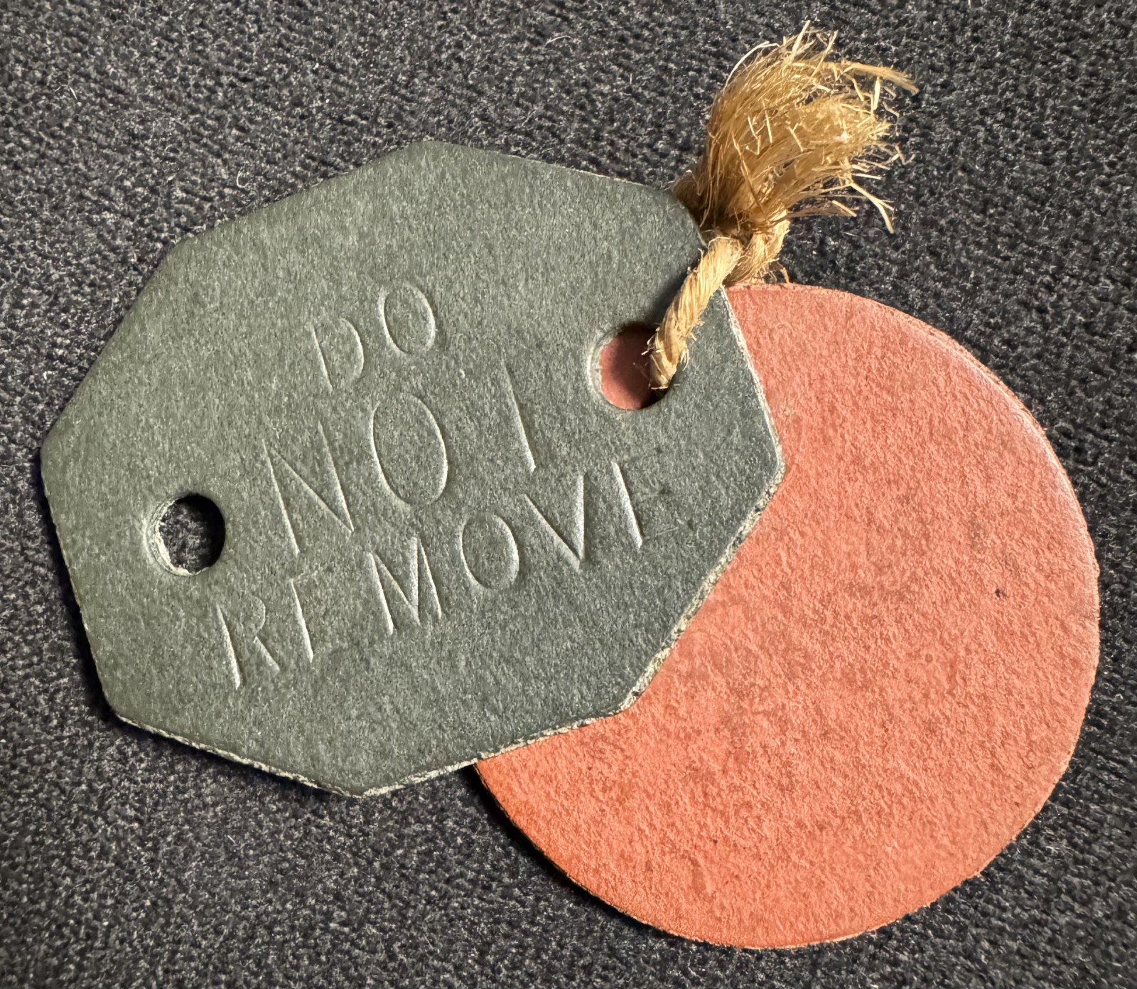 Identifikační známky byly ručně oraženy příjmením, iniciálami, služebním číslem a náboženským vyznáním držitele a v případě Královského letectva i iniciálami RAF.