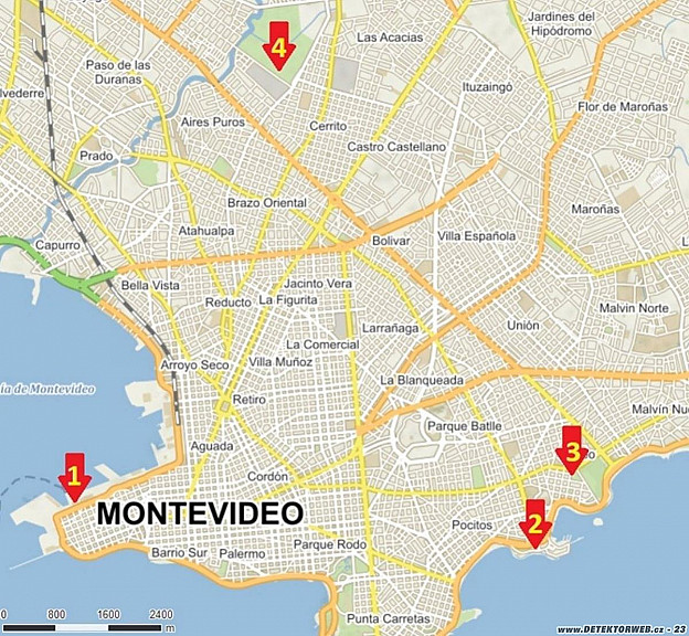 Do Uruguaye jsem se dostal letos v září. Ubytován jsem byl v centru Montevidea. Výhled z ubikace byl přímo na Rio de la Plata. Na první fotce je přibližně označeno místo, kde byl bitvou poškozený A. G. S. dne 17.12.1939 potopen vlastní posádkou.