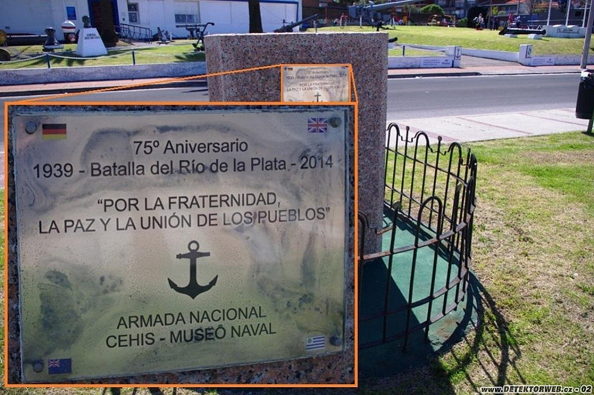 Další kroky jsem směřoval na místa posledního odpočinku padlých z této bitvy. Kousek od muzea leží hřbitov britské menšiny. Tam je takový malý koutek věnovaný námořníkům. Na něm jsou pohřbeni také tři námořníci z britského křižníku H. M. S. Achilles. Britové své padlé pohřbili, po námořnicku, do vod Rio de la Plata. Tihle tři byli ale vyplaveni na břeh a proto byli pohřbeni zde. Na britském hřbitově jsou také pohřbeni tři němečtí účastníci bitvy. Ti zde byli ale pohřbeni na vlastní přání až později, protože se po válce v Montevideu natrvalo usadili.