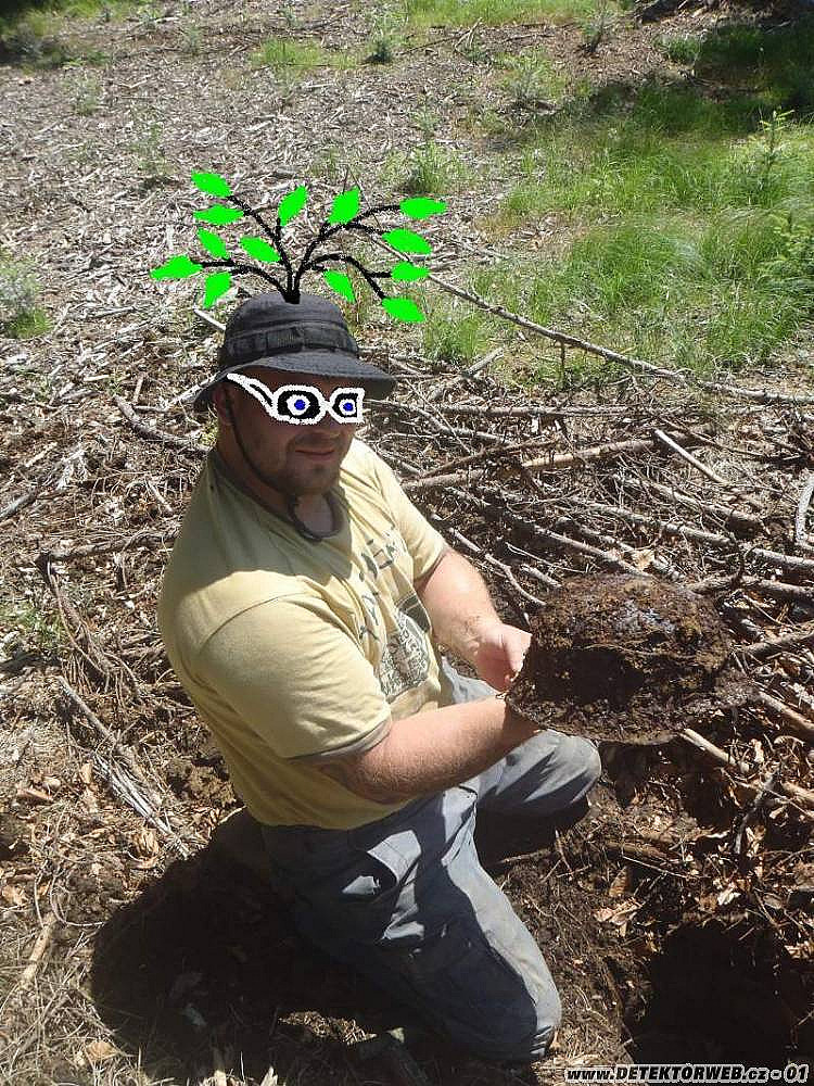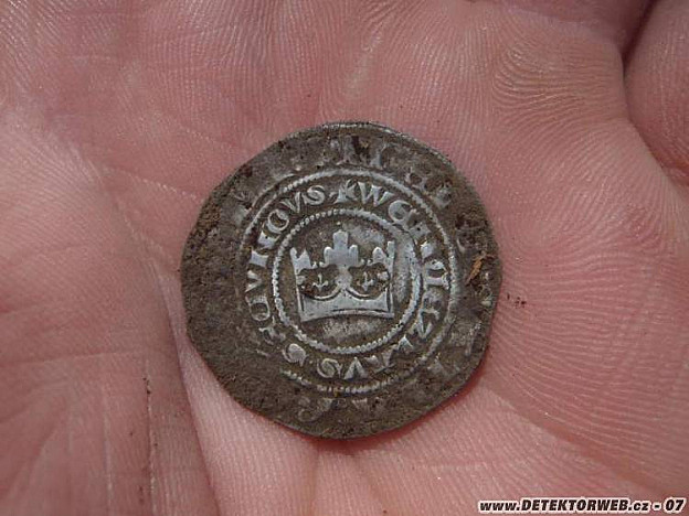 V jednom okopu chytnu takový "nijaký špatný signál", říkám si za 3hodiny hledání jsem byl sotva 10x ohnutý tak to vykopu... odhážu větve a dám se do práce... asi v cca 60cm narazím na lem helmy... zavolám kolegu a svou přítelkyni a zahajujeme velkou akci na vysvobození helmy... stav byl odpovídající stáří nálezu... proběhly fotky, videa a já po "vernisáži" helmu věnoval kamarádovi Jiříkovi... už v tu chvíli jsem si říkal, že ten nahoře to vidí a ocení mou velkorysost :o). Tak trošku vypočítavě jsem s tím spíš počítal :o) Na další hodinu neocenil... nicméně jsem se nerouhal. V tu chvíli signál... opět železný, ale hrabu... vyhrabu asi ten den šestou podkovu... už trochu s úšklebkem a ironií prohlašuji směrem k přátelům: "to dneska budu mít sakra velké štěstí, když mám další podkovu"... ujdu asi 7kroků a najednou signál... ten den nejčistější - zvednu hlavu nahoru, cosi zamumlám a začínám kopat... říkám si kolem okopy, uprostřed lesa - přemýšlím, že by nějaký odznáček?? 3x hrábnu a najednou vidím v hlíně obrys mince... v tu chvíli zaostřím a už křičím na celý les. . "mám ho, je tady, Pražský groš!! "Hledám už 17let, ale tohle je můj první-asi to bude tím kde bydlím... Byl jsem nadšený, překvapený... hned jsem si vzpomněl na to jak jsem byl velkorysí s helmou a že jsem se nerouhal. Prostě člověk co má najít, to najde... někdo to řídí... Jen jsem ho promnul v prstech se slinama a vykoukl z něho takový pěkný kousek. (Václav II. , 1283 - 1305 ) Tož tak no...