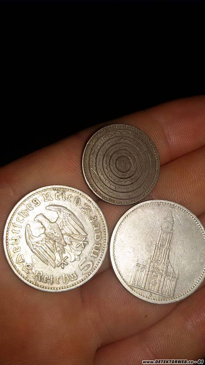 Přezky se tu nějaké našli, ale tato mi udělala velkou radost, proto bych se s vámi chtěl o tuto radost podělit a zároveň by mi i nějaká informace o této krásné přezce přišla vhod, pětimarky byli spolu pod starým stromem a u nich nějaký žeton, či co to je (?) udělaný z nějaké stříbrné mince, důvod výroby této věcičky je mi také neznámý, děkuji