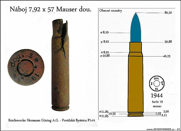 22. 04. 2022, 12:18Náboj 7,92 x 57 Mauser. Výrobce Zbrojovka Brno závod Povážská Bystřice (dou -Reichswerke Hermann Goring AG Považska Bystrica)