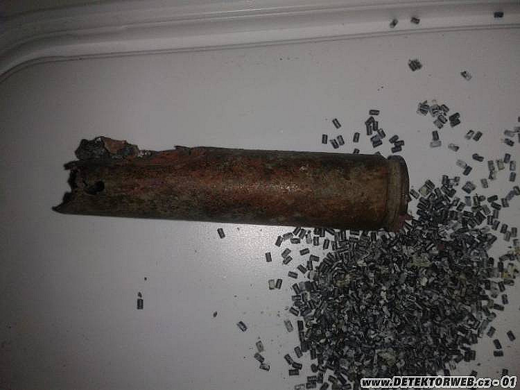 Nevíte, o jakou jde nábojnici? Nejspíš amík - DM (Des Moines) 42. Není celá (i když jsem zevnitř ještě vysypal zrnka prachu), ale tipoval bych to na 11,43. Délka cca 50 mm, průměr 11 mm a kousek. Prosil bych tedy odborníky o určení.
