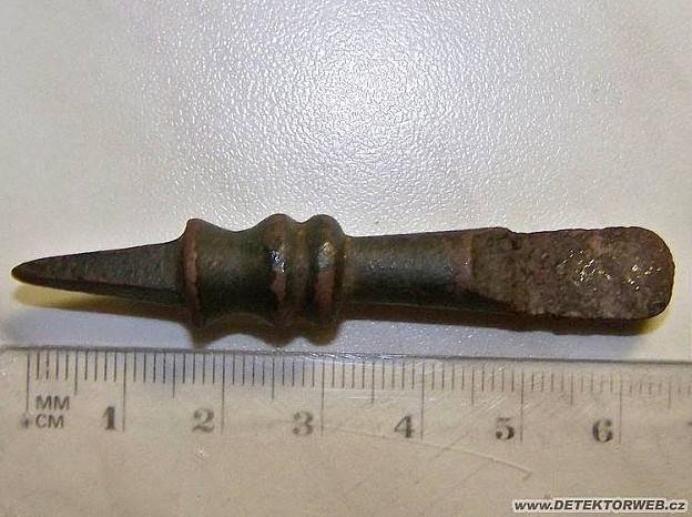 02. 09. 2009, 14:01Ten matroš se tváří jako litina, pokud se nemýlím, pak by to mohla být špička z nějaké mříže, případně ozdoba ze zábradlí s tím, že na hrotu mohlo být naražené madlo nebo něco podobného.