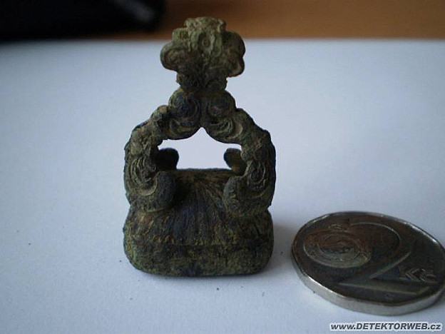 nevím sice jak se tento předmět přesně nazývá, ale je to přívěšek - pečeť. Má barokní prvky, ale jestli je i z této doby? Jestli je z bronzu,