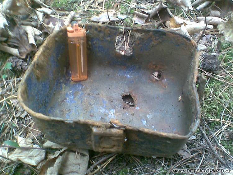 19. 10. 2010, 11:17Ta nábojnice je do 26,5mm signální pistole vz. 44 (nebo 44/67, 44/81 - modernizace) irv - značka výrobce Bojkovice. Černým pruhem se označovaly jednak "šrapnely", ale také "černý dým" - rozlišení mezi těmito typy bylo řešeno použitím rozdílné zátky, ale to se z vystřelené nábojnice už nezjistí...