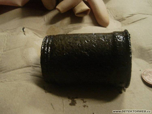 3.A tady žádám o radu. Velikost je podle mince. Je to prázné(zdruhé strany je díra), dřív to mohlo být možná granát(ale ten tvar?)Nevím