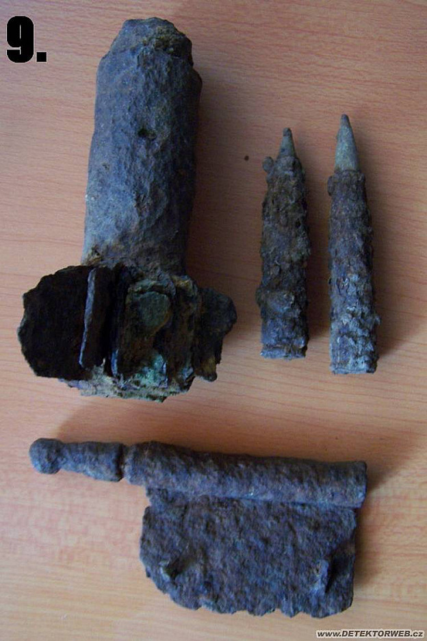 Minci na obr. 1 jsem našel jako jedinou v lese. Většinou chodím po polích. Obr. 2,9,10, jsou z jednoho pole u zaniklé obce v Sudetech. Torzo křížku z růžence je 4x3,5cm. Jinak ostatní mince + knoflíky jsou z jednoho pole na okraji mého rodného města.