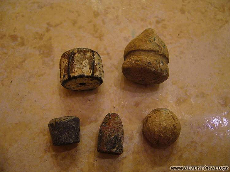 01. 08. 2007, 11:09První fotka směska různých olověných kulí. Druhá fotka - plukovní označení prvorepublikové armády a polotovar z výroby hodnostních límcových označení příslušníků Luftwaffe. Třetí fotka RU knoflíky.