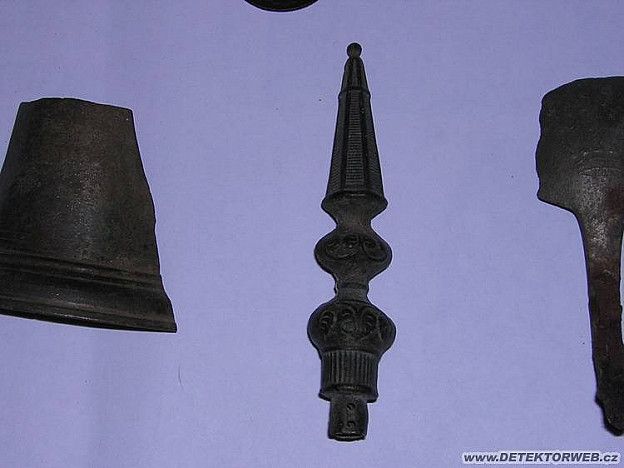 Tady bych chtěl opět poprosit znalce z čeho je tento předmět domnívám se, že je z přilby, ale nejsem si tím zcela jist. A také pokud by někdo věděl kde byl zavěšen ten zvonek. Já myslím, že někde na koni, ale je to pouze domněnka.