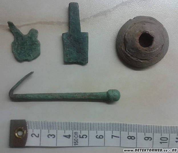 21. 08. 2012, 18:07Zdarec, 2,3,4, vypadá na přeslen, 5,6, nějaké zlomky čehosi, 7,8, vypadá jako bronzová jehlice. foto 1 je tu nejlepší, ale chtělo by to víc takovejch fotek