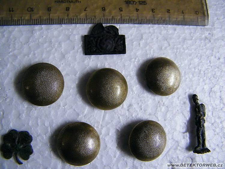 19. 05. 2010, 14:02čau Jezero mě bylo řečeno že těch 5 knoflíků sou německý kropenáče tak nevím na fotu sou tmavý ale v origoši se lesknou jako psejčí kulky jako by pozlacený toš nevím. Ale díky za info posílal sem víc příspěvků s nálezy tak sem zvědavej jestli klukům došly a vystaví to.