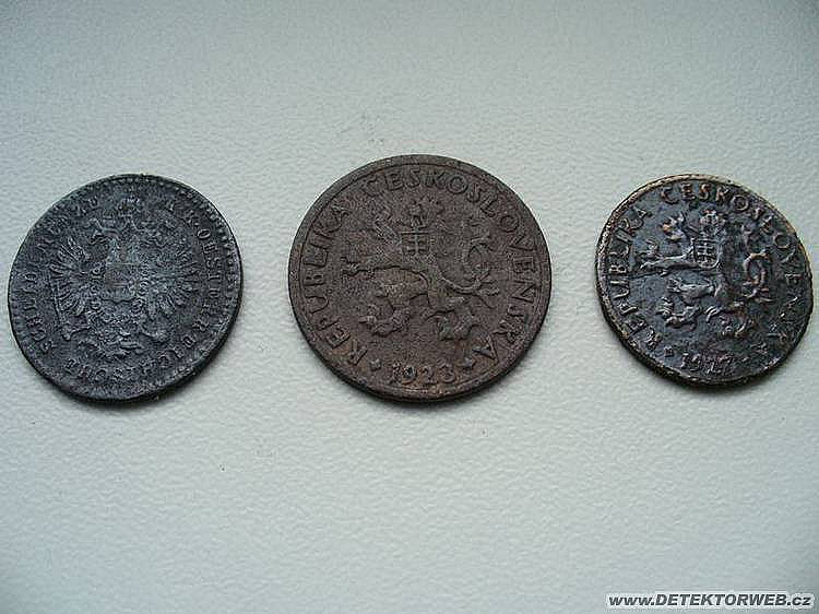 Podařilo se nám kopnout minci Marie Terezie odhad roku asi 1760 náš nejstarší nález, ale bohužel po smrti, potom zajimavou sošku ryby, vysoká 23 mm pravděpodobně pozlacená, dále ID známka ztracená na louce a další... Většina mincí hlavně měděných krejcarů jsou všechny v hrozným stavu tak je sem ani nedáváme.