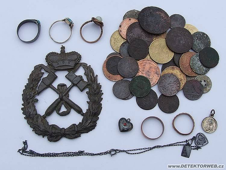 rozmanité. Mince, nějaký šmuky, podkovy, šíp z kuše, ale nejvíc mi udělal radost ten hornický znak.