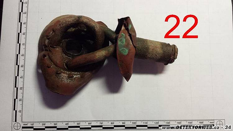 20. 10. 2014, 20:33Děkuji za pomoc s určením. Ta 18 se mi taky jeví jako zakončení chomoutu. Uvnitř byly zbytky dřeva. Jinak u jedničky jsem si myslel, že se jedná o falerku. Nicméně místo nálezu by odpovídalo spíše perkusáku. Dnes opět další podivné nálezy. Koncem týdne přidám další. Dnes se celkem dařilo