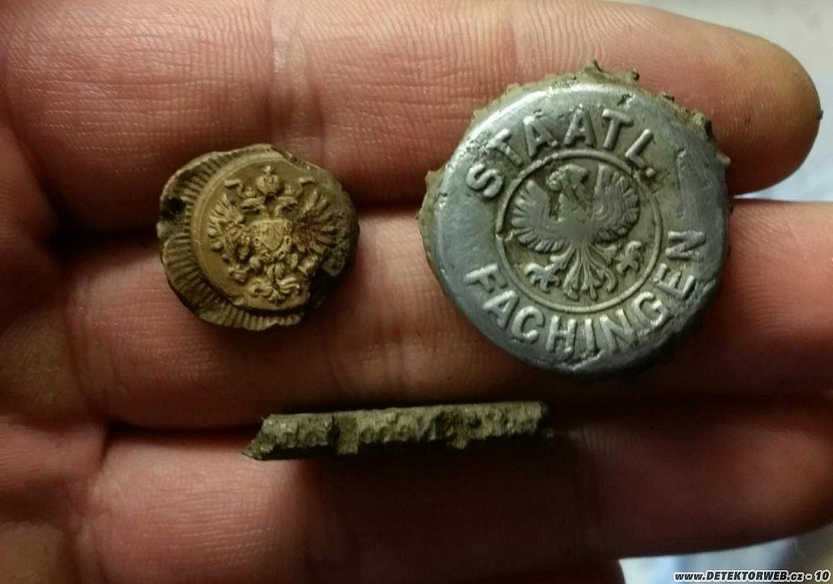 Zdravím všechny krtky.Posílám na pokuk opět pár kousků zpoza cívky detíku. Radost udělal hlavně ten napoleonský knofl, našel ho synátor. Jinak se mi na poli připletl pod nohy ten kámen zajímavého tvaru, ten na posledním fotu, asi bude z vesmíru, a ať dělám co dělám, nemohu si vzpomenout, co mi připomíná. Snad poradíte.