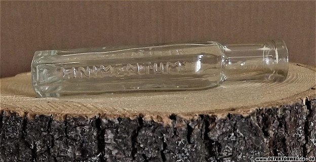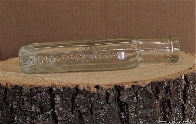 Dalším nálezem byly dvě láhvičky ALPA. Ty jsou poměrně časté, a tak jsem je ani nefotil, ale byla tam i zajímavější láhvička. LINIMENTUM ORIG. SEDLÁČEK. Hledal jsem a našel lékárnu U Zlaté koruny v Kyjově. Tady je něco z její historie.