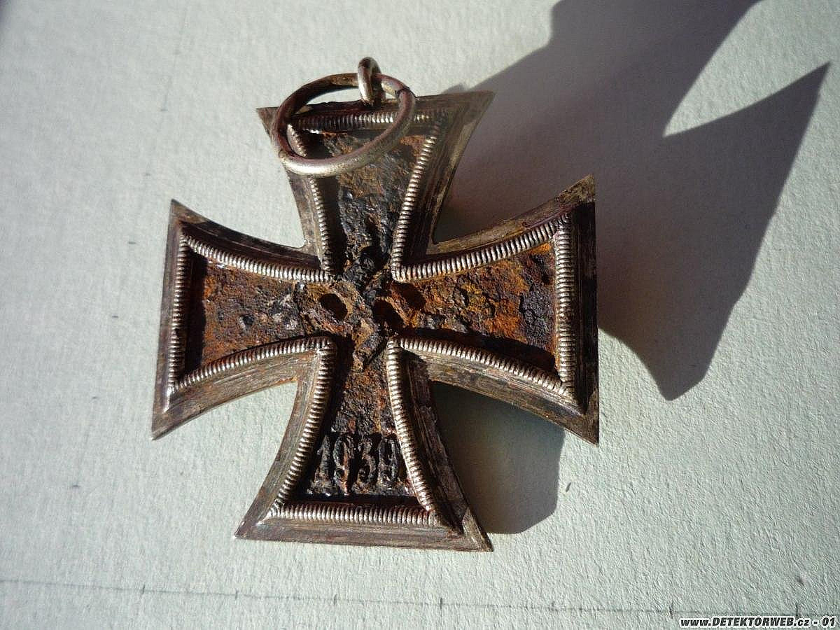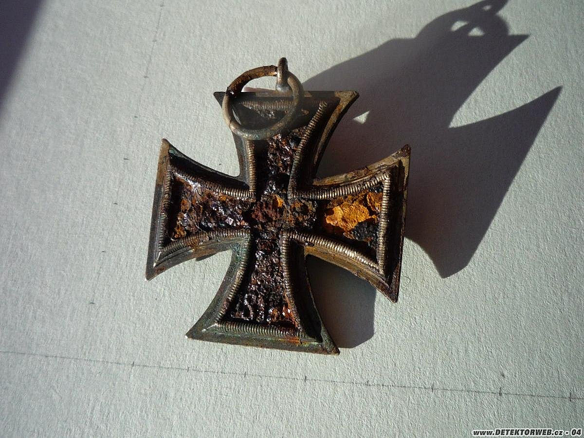 01. 02. 2017, 07:26Ahoj kluci. Oba kříže jsou ze sudeťáků. Jeden je na tom lépe - ve sklenici nebyla voda. Sklenice byly dost hluboko, tak se tam vlhko sráželo jen minimálně a nebyl na dně. . Druhý, co je na tom hůře, byl spolu s dalšími věcmi v malé ( asi ) mosazné plechovce. Ale v té plechovce bylo dost vlhko. Stuhy byly napadrť. Když jsem to vytáhl, byla to vše jedna rez. . proto je na rozsypání. Bruno.