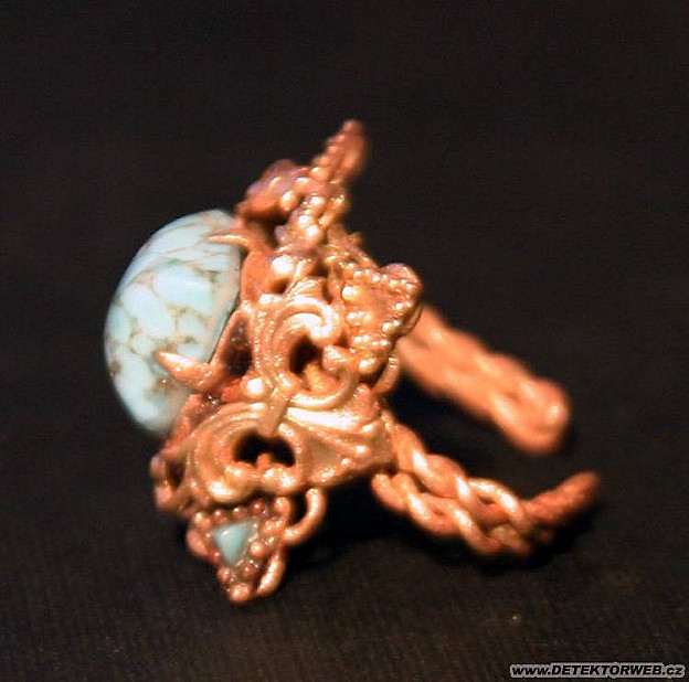 2- Prsten - Nevím kam jej zařadit. Kameny jsou pravé, to co vypadá jako měď je zlato, tímto omlouvám fotky, ale s tolika odlesky si narychlo neporadím. Podotýkám, že byl nalezen na poutním místě hned vedle místa výše zmiňované bývalé rozhledny cca 20 cm v zemi.