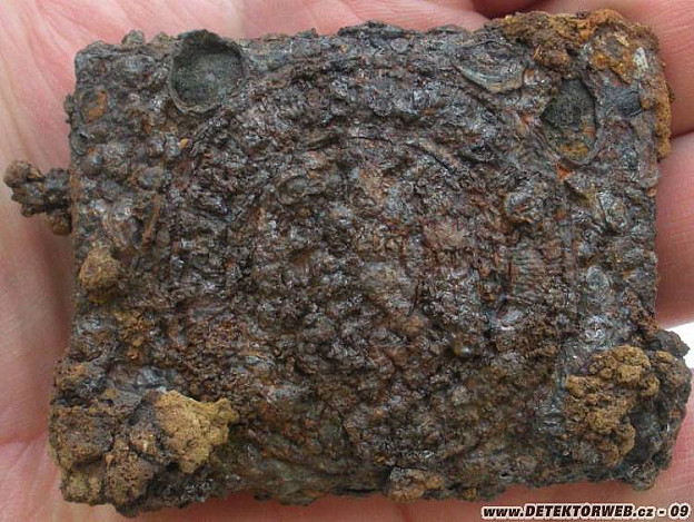 Vše až na železnou přezku a odznak se slepičkou, se podařilo celkem dobře vyčistit a zachovat. Co zbylo z přezky, je na fotkách. Pro ilustraci jsem přiložil jiné kousky toho druhu.