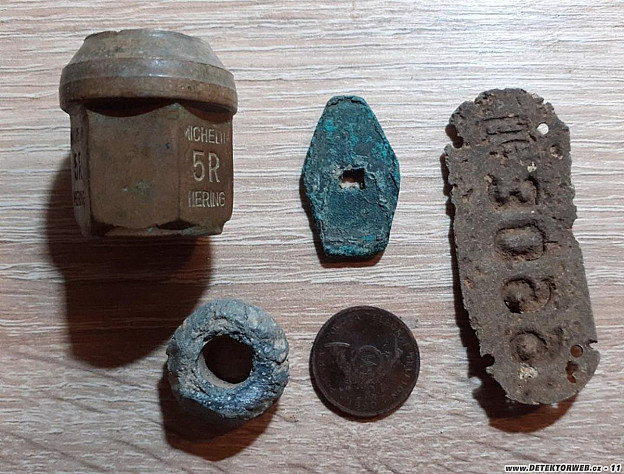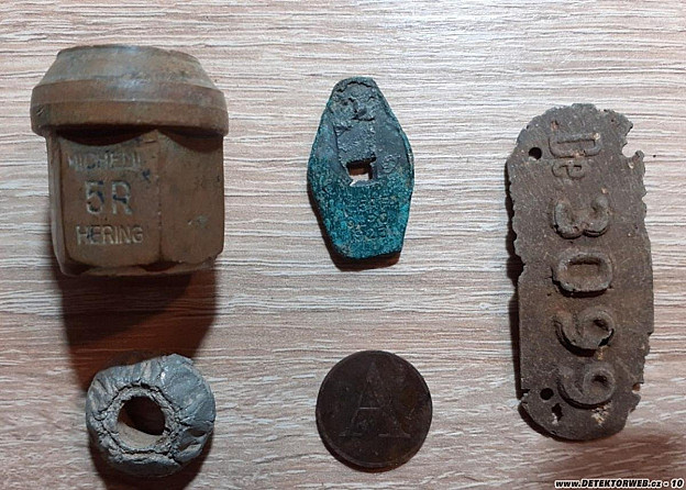 Ahoj, kamaradi, nevite náhodou co to je za kousky? Děkuji.Ta matice je bronz, ten kroužek olovo, ten zelený lístek je mosaz nebo bronz, žeton nevim a ag nevim vůbec.